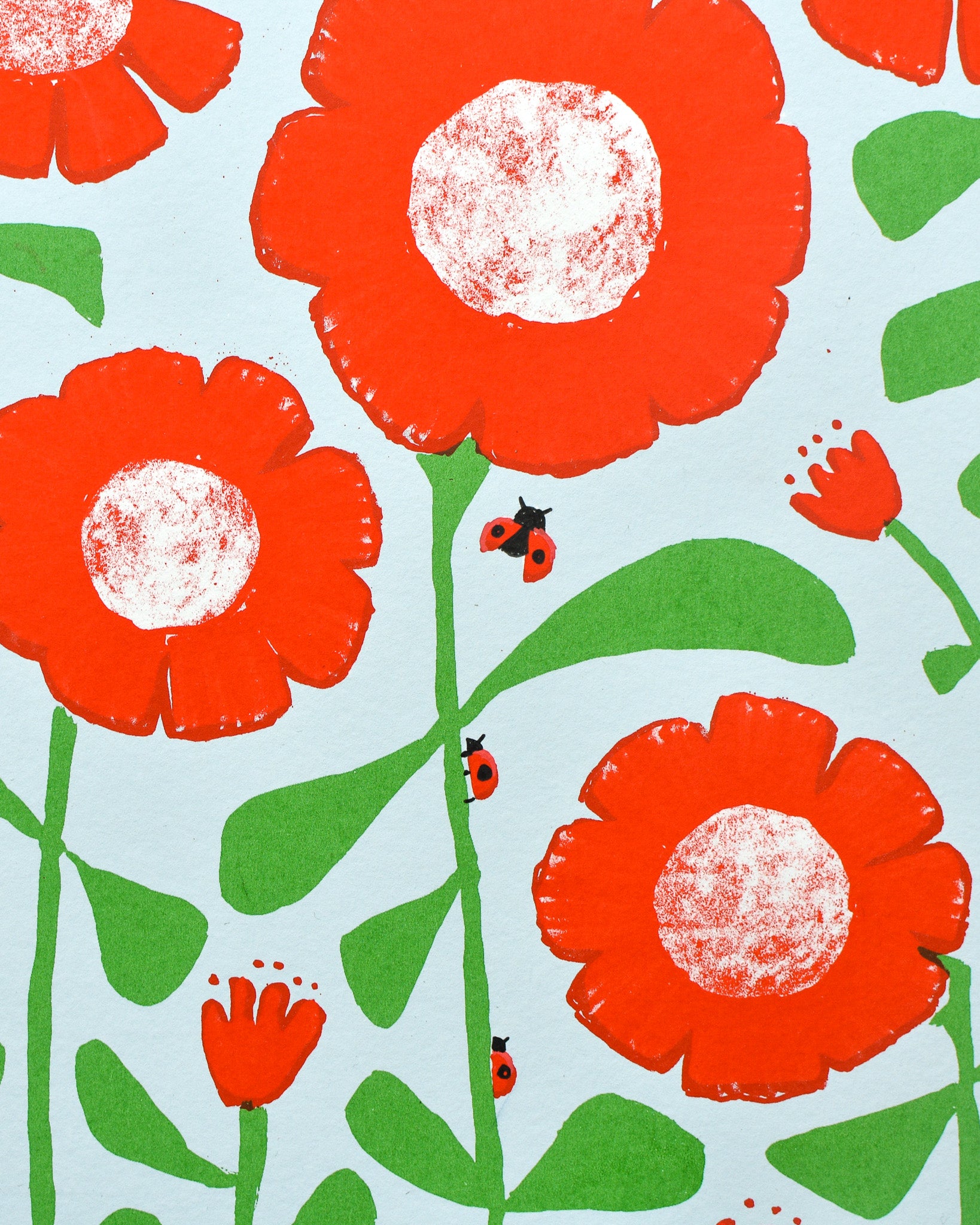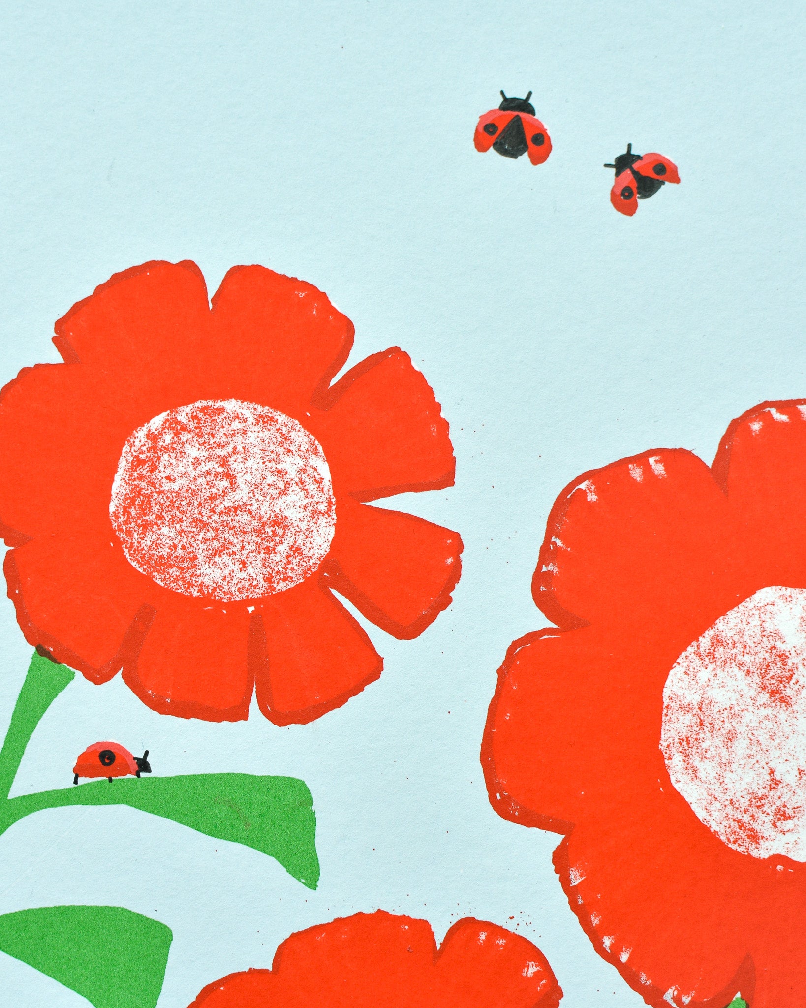 Five colour screen print made using a combination of flat colour and textural layers, created using 'True Grain' film. Each print is finished by hand with unique detailing and embellishments.